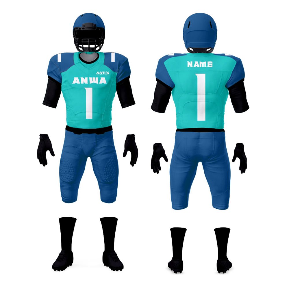 At Anwa International, our American football uniforms are crafted with precision to offer players both essential protection and a strong sense of team identity. Made from comfortable, 100% recycled materials, these uniforms not only enhance performance but also contribute to reducing plastic waste. Here’s a breakdown of the main components of our uniform: